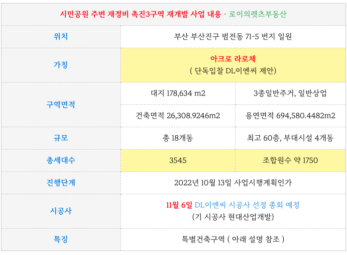 시민공원 주변의 재개발 구역들중에 3500여가 넘는 가장 큰 세대수를 가지고 있습니다.