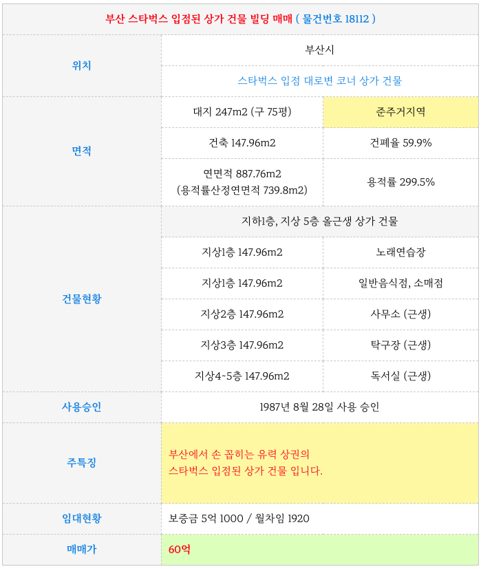 부산 스타벅스 입점된 상가 건물 매매 ( 부산 상가 건물 매매 )
