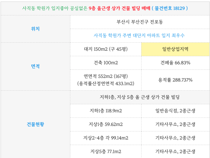 전포동 상가 : 송상현 광장 인근 상가 건물 매매 : 공실없는 (부전동)