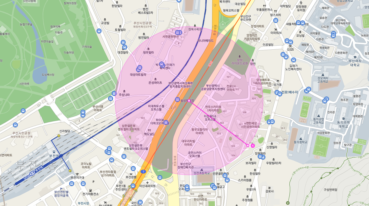 부산 지하철 1호선 부전역에서 도보 5분여 거리에 위치하고 있는 역세권이라 할수 있고
