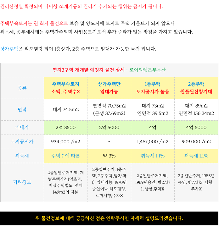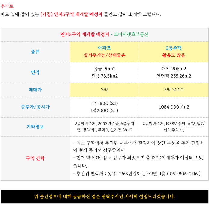 연지3구역 재개발 예정지 물건 정보 소개해 드리겠습니다.