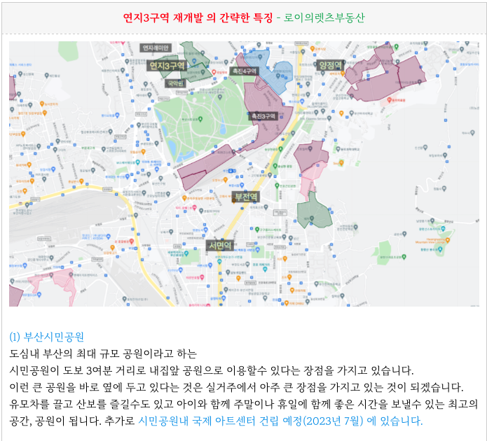 시민공원 연지3구역 재개발 예정지의 입지적인 특징을 다시 한번 간략히 정리하여 드립니다.
