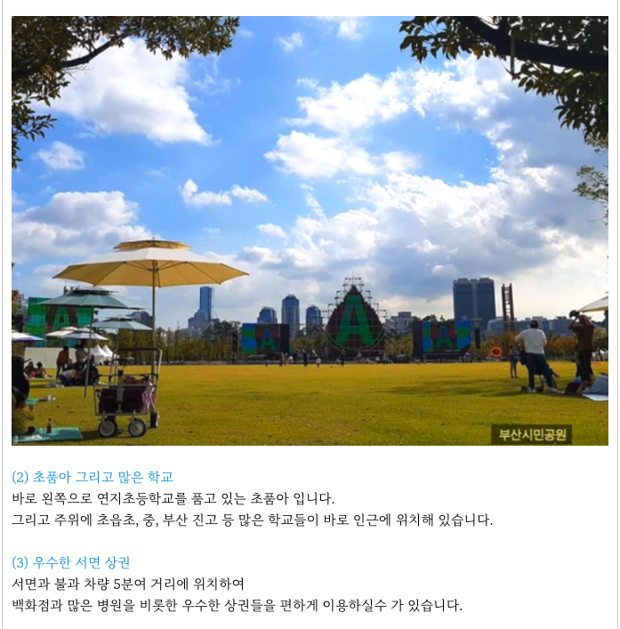 시민공원을 남향으로 바라보는 영구 조망을 가질수 있는 큰 장점을 가지고 있습니다.