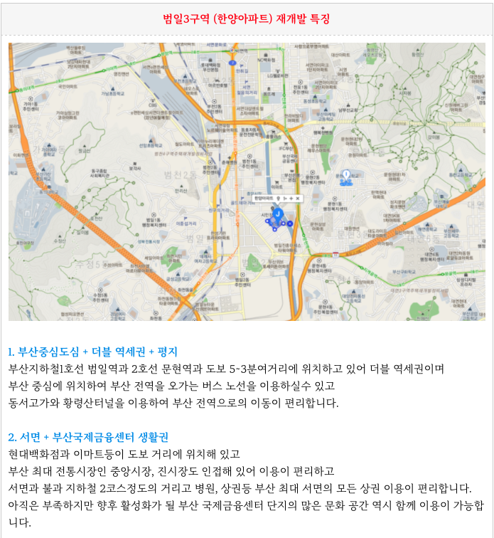 [ 부산중심도심, 더블역세권, 평지, 서면생활권, 강변아파트, 주변 재개발로 인한 변화 ]