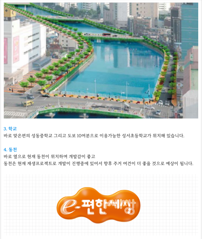 동천을 끼고 있는 평지 강변 아파트로의 특징도 가지고 있습니다.