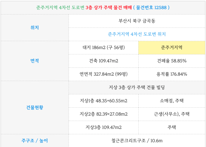 준주거지역 4차선 도로변 3층 상가 주택 물건을 정리해 드리겠습니다.