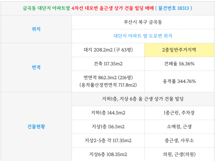 ( 북구 금곡동 상가 ) 10억 언더 - 수익률 좋은 6층 건물 매매