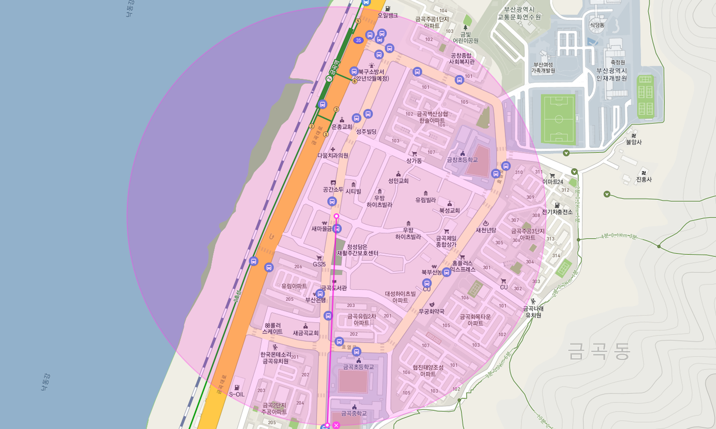 주위에 총 7000여 세대가 넘는 많은 아파트 단지들을 두고 있는 주거 단지 입니다.
