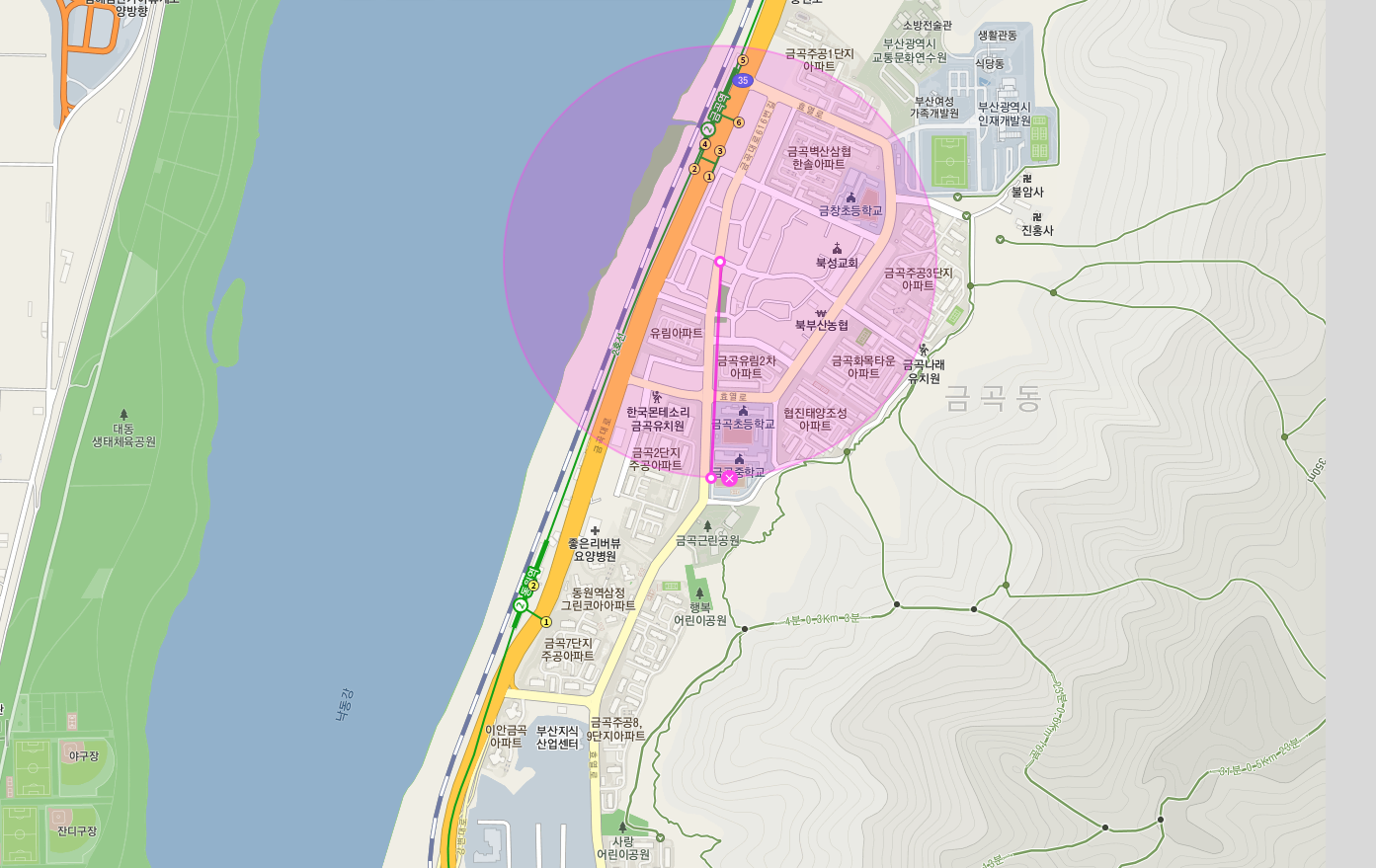 부산 지하철 2호선 동원역과 금곡역 2개 역을 두고 있으며