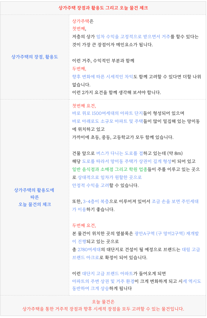 광안A재개발인근 망미동 상가 주택 매물 : 거주+고정수익+향후시세 기대되는