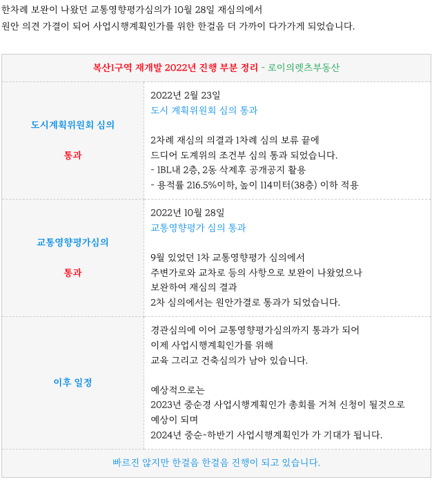 복산1구역 재개발 의 현재까지의 진행상황을 정리등 추가 정보는 아래 페이지를 참고 부탁드립니다.
