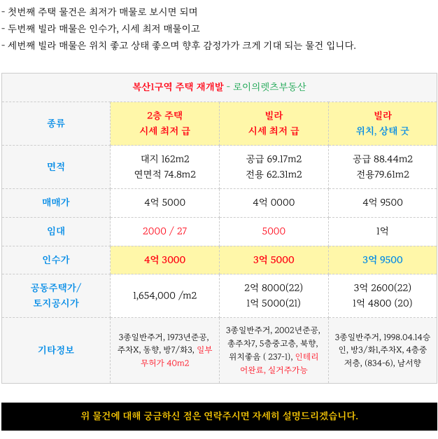 복산1구역 재개발 최저 시세 급 물건들 정리하여 소개해 드립니다.