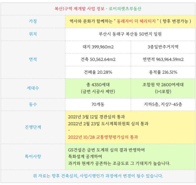 복산1구역 재개발 의 특징을 다시 한번 간략히 정리하였습니다.