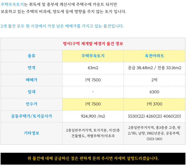 명서1구역 재개발 예정지 물건 정보를 소개해 드리겠습니다.