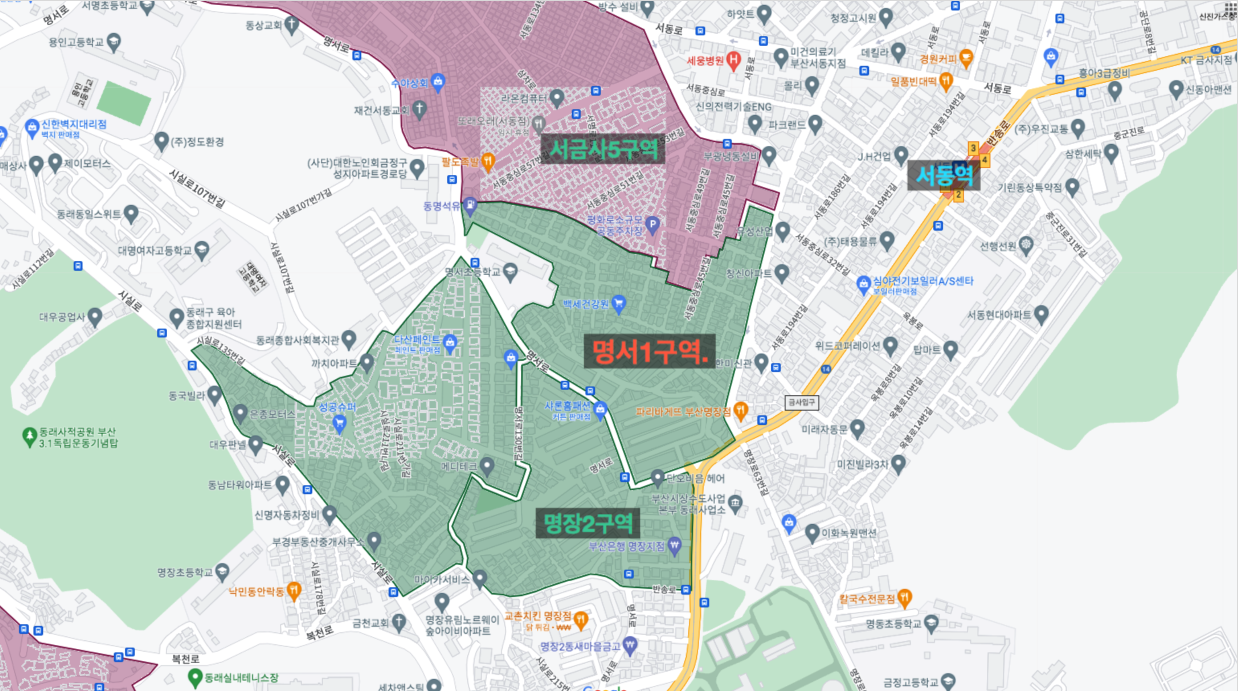 기존 명장2동, 서2동 재개발 예정지 또는 협진태양 옥천아파트 재개발로 불리던 곳으로