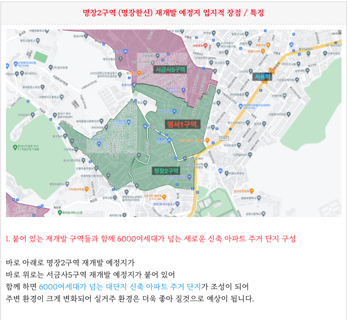 명서1구역 재개발 예정지의 입지적 특징을 다시 한번 정리해 드립니다.