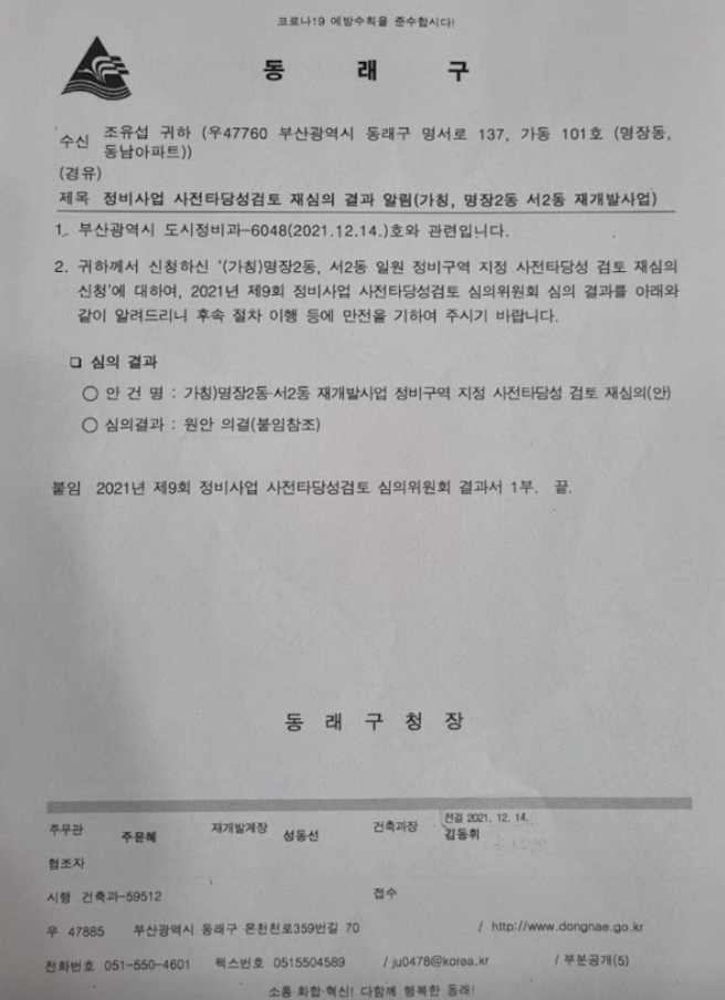 2021년 12월 정비구역지정을 위한 사전타당성 심의를 통과후에