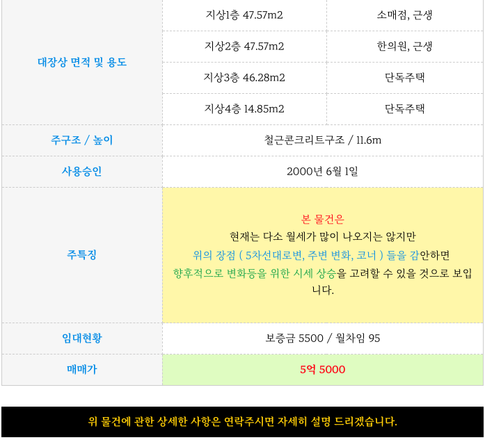 매매가가 5억대라는 가격적으로 더 큰 장점을 가고 있는 소형 상가주택 물건입니다.