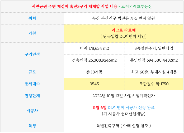 촉진3구역 재개발의 새로운 시공사로 선정된 DL이엔씨 제안 내용을 간략히 정리 드립니다.