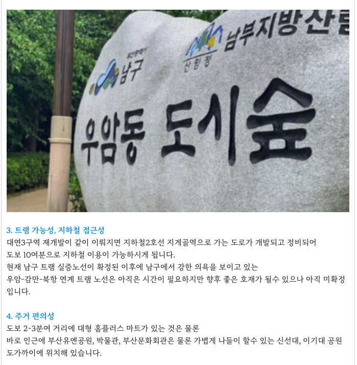 - 북항조망, 초품아, 숲세권, 트램 가능성, 우암해양클러스터