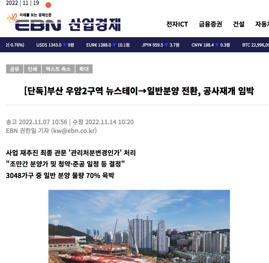 - 우암2구역은 계속 일반분양 전환이 다소 지연된 것에 이어 기