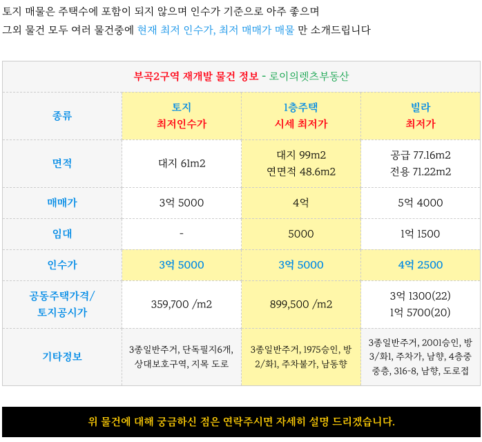 부곡2구역 재개발 현재 가능한 괜찮은 주택 및 빌라 물건등 소개 해드리겠습니다.