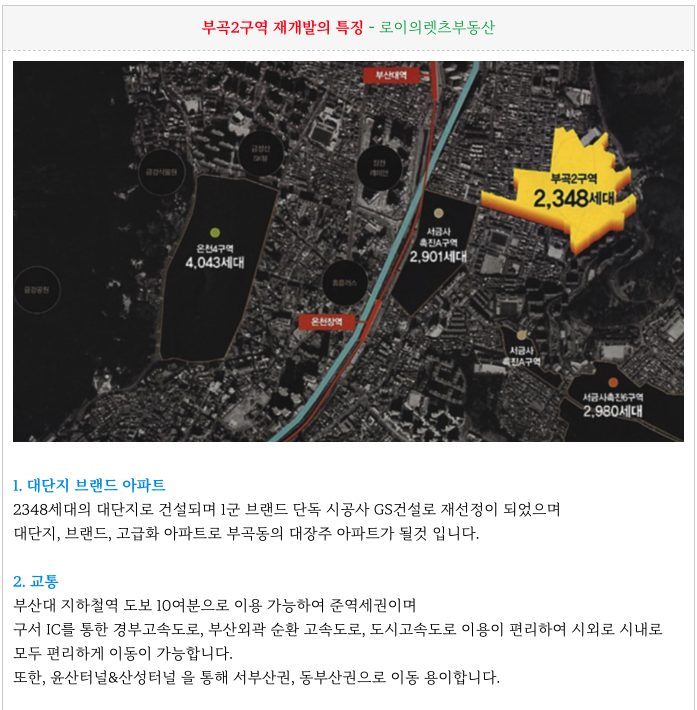 부곡2구역 재개발의 특징을 다시 한번 정리 드립니다.