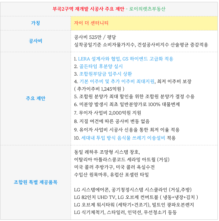 부곡2구역 재개발 시공사 GS건설의 주요 제안 내용 입니다.
