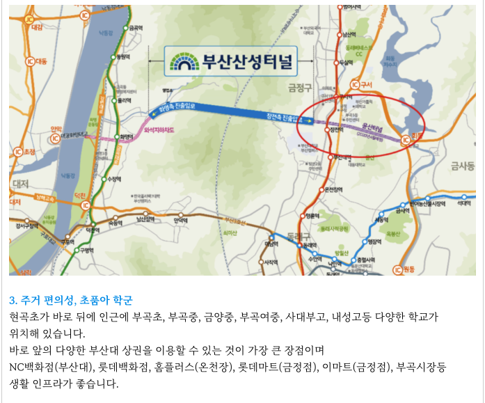 - 대단지 브랜드 아파트, 산성터널, 윤산터널, 경부선