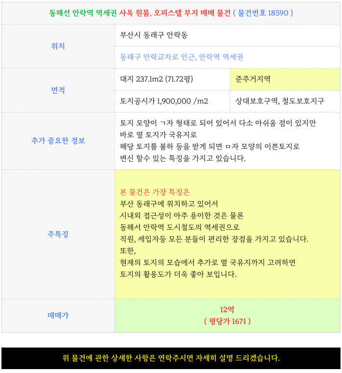 동해선 안락역 역세권 사옥 원룸, 오피스텔 부지 매매 물건 정보 정리 드립니다.