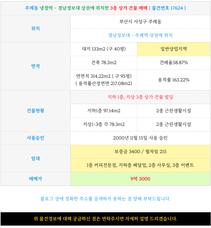 ( 사상구 상가, 사상상가, 주례동 상가, 경남정보대 상가 )