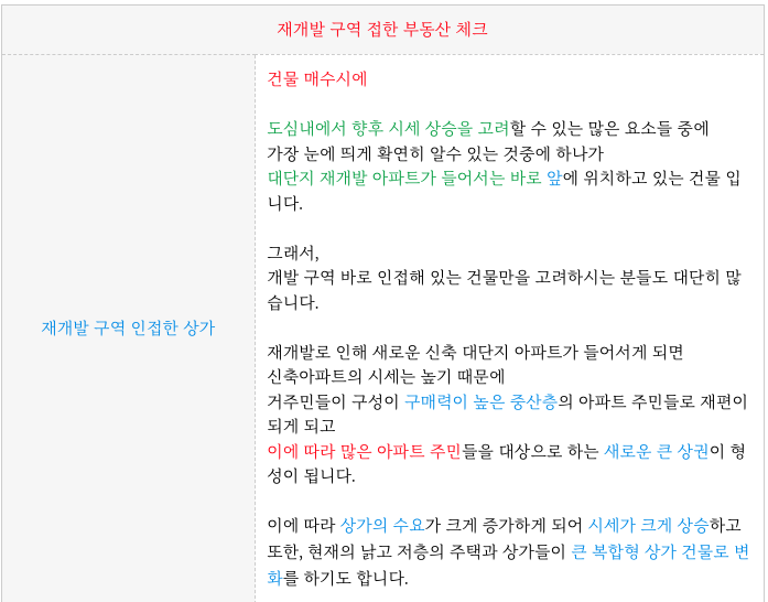 대단지 재개발 구역에 바로 인접해 있는 상가 물건은 향후 시세 상승이 크게 기대 되어 미래가치가 큽니다.