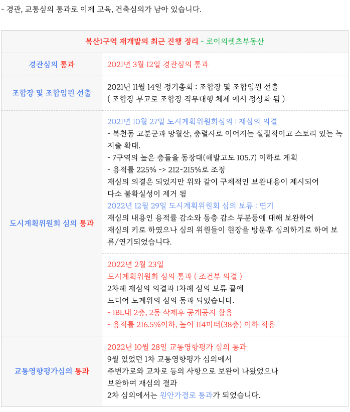 복산1구역 재개발 의 현재까지의 진행상황을 정리해 드립니다.