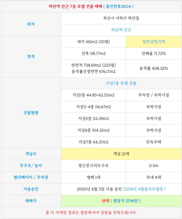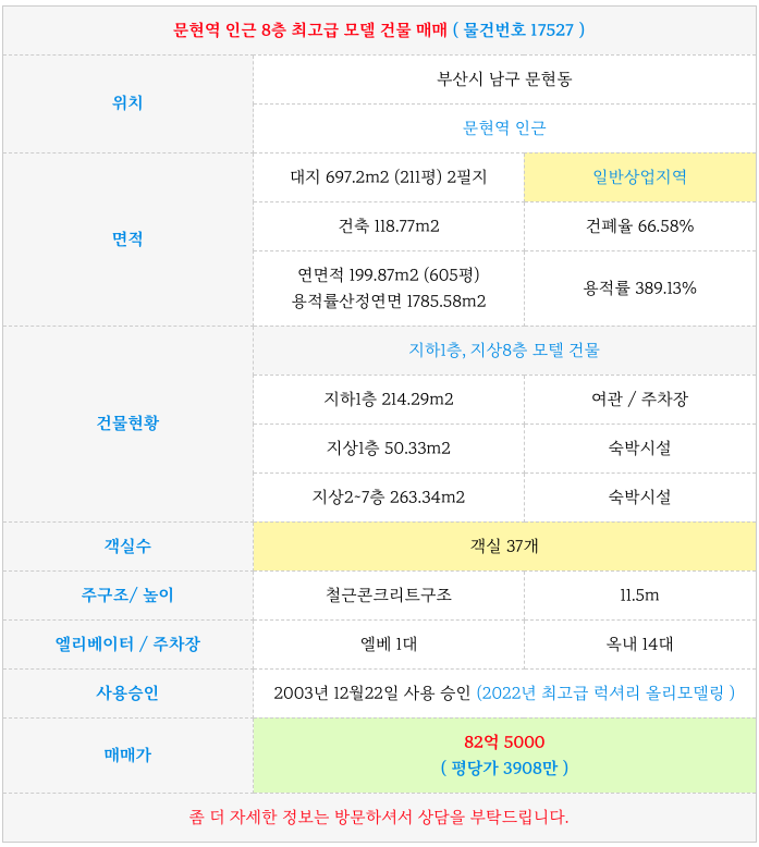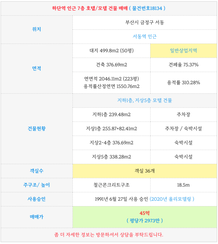 부산 가격대별 호텔/모텔 매매 물건 소개