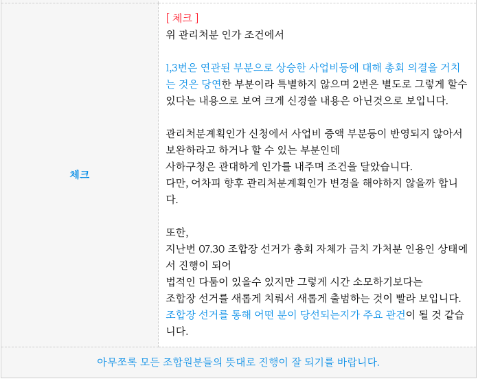 관리 처분계획인가시에 부족했던 부분들과 함께 조합원들의 요구사항을 받아 추가 적인 보완이