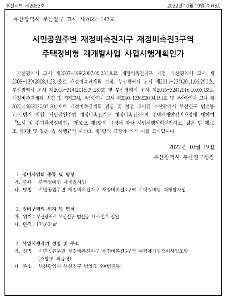 시민공원 촉진3구역 재개발의 간략한 특징을 다시 정리해 보았습니다..