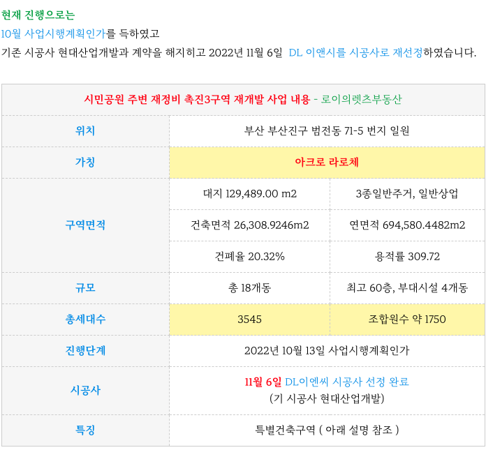 촉진3구역 재개발의 시공사 DL이엔씨 제안 내용을 간략히 정리 드립니다.