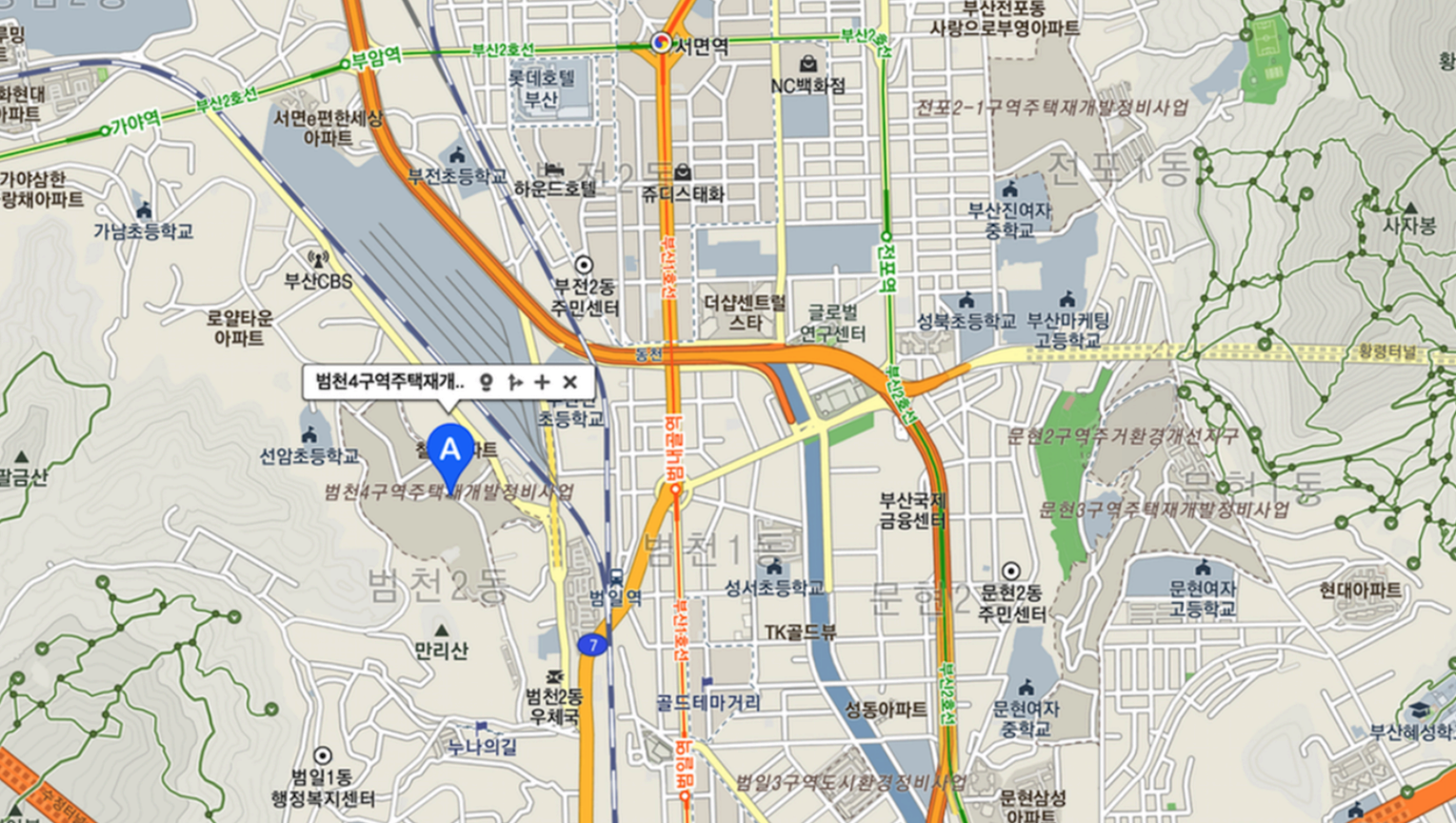 동서고가, 황령산터널, 백양산터널로 시내외 이동이 편리한 교통적인 장점을 가지고 있습니다.