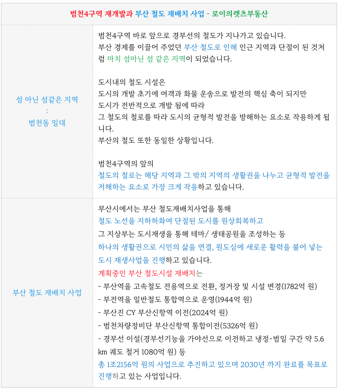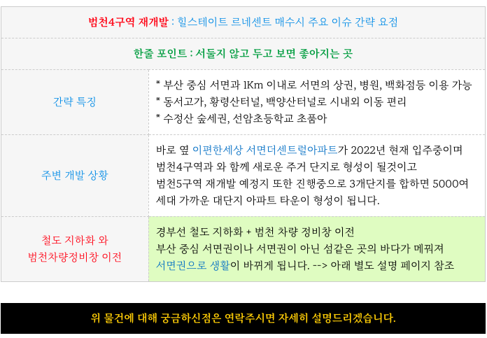 안녕하세요. 로이의렛츠부동산 ( 제이에이케이 부산 부동산중개법인 ) 입니다. 개발호재 범천4구역 재개발 ...