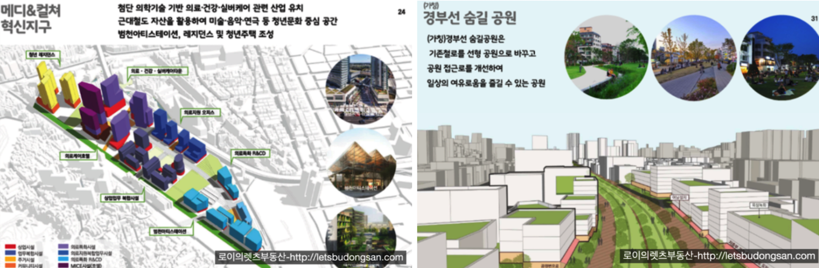 범천차량정비창이전 + 경부선 철도 지하화 + 새로운 대단지 아파트 타운 으로 인해