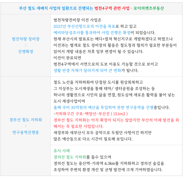- 부산 경부선 철도 지하화는 부산시 중심 과제로 공약등으로 나왔지만 아직 확정 및 일정이 미정입니다..