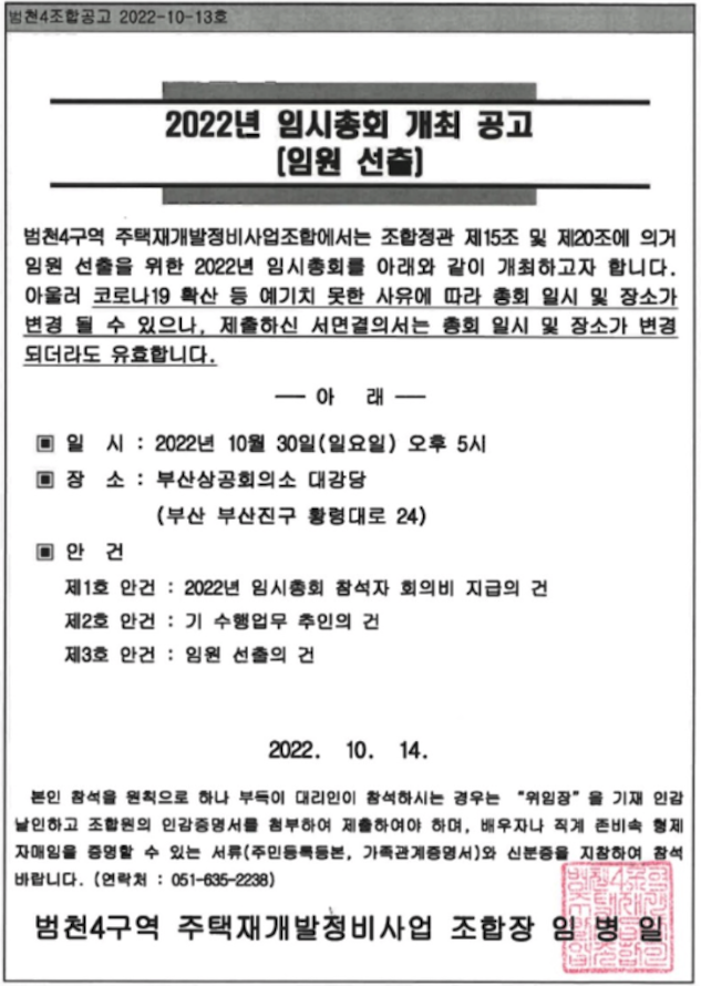 최근 10월 30일 조합원 총회를 통해 새로운 조합장을 선출을 완료하였고