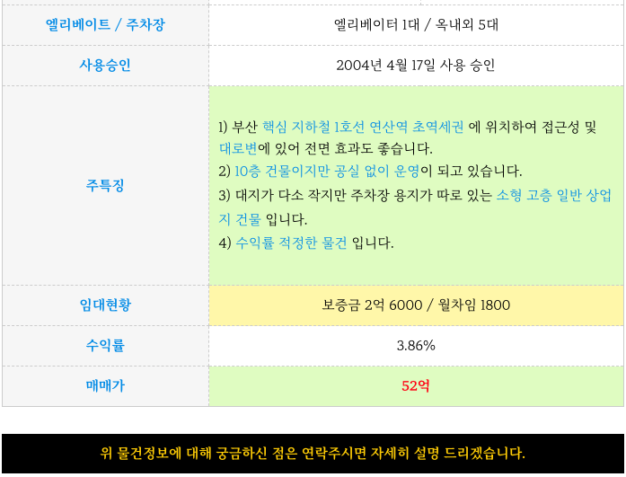 4) 수익률 적정한 물건 입니다.