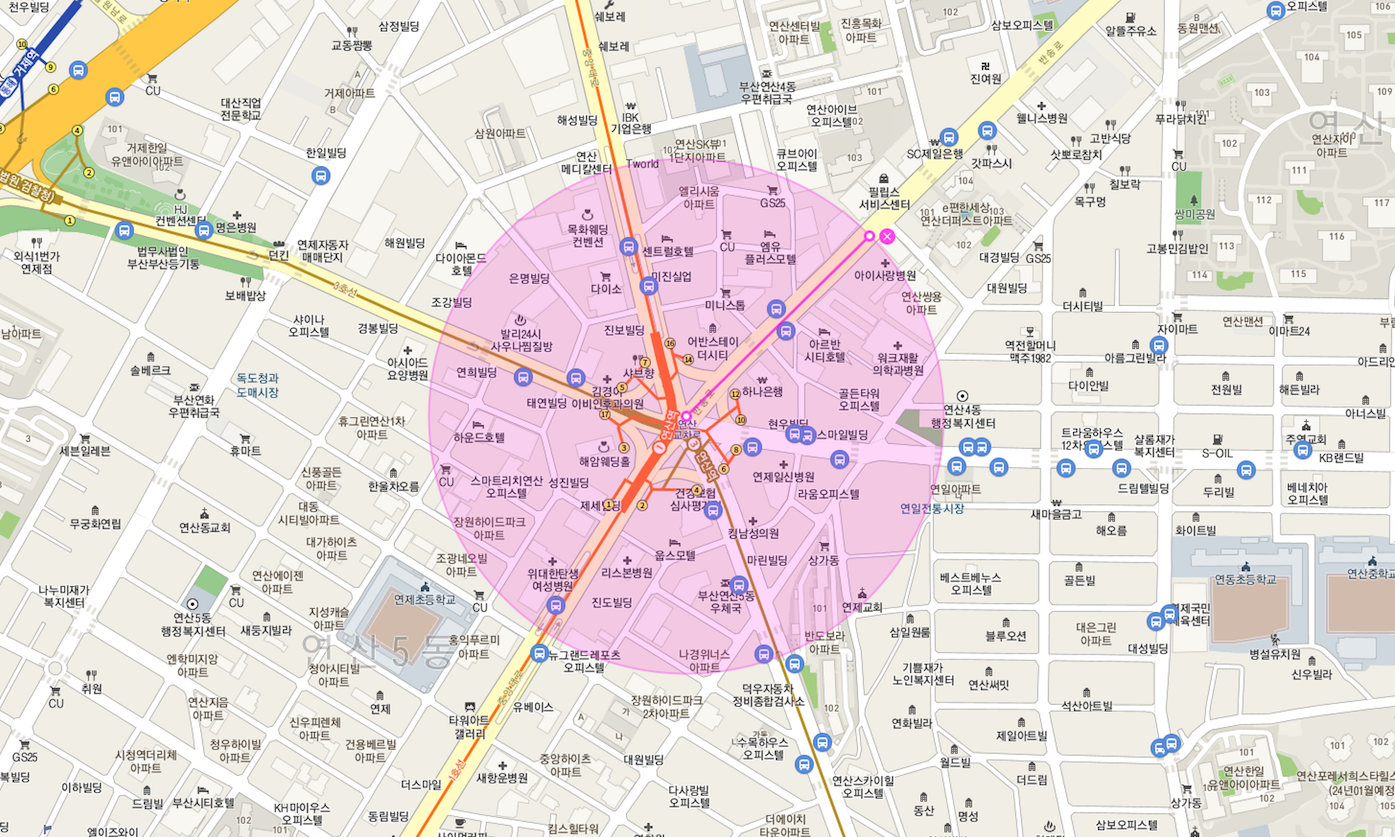 부산 최고의 상권중 하나인 연산동 연산로터리 연산역 초역세권 에 위치하고 있어
