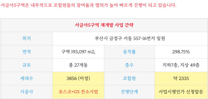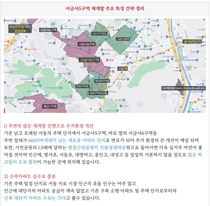 서금사5구역 재개발의 특징을 다시 한번 정리해 드립니다.