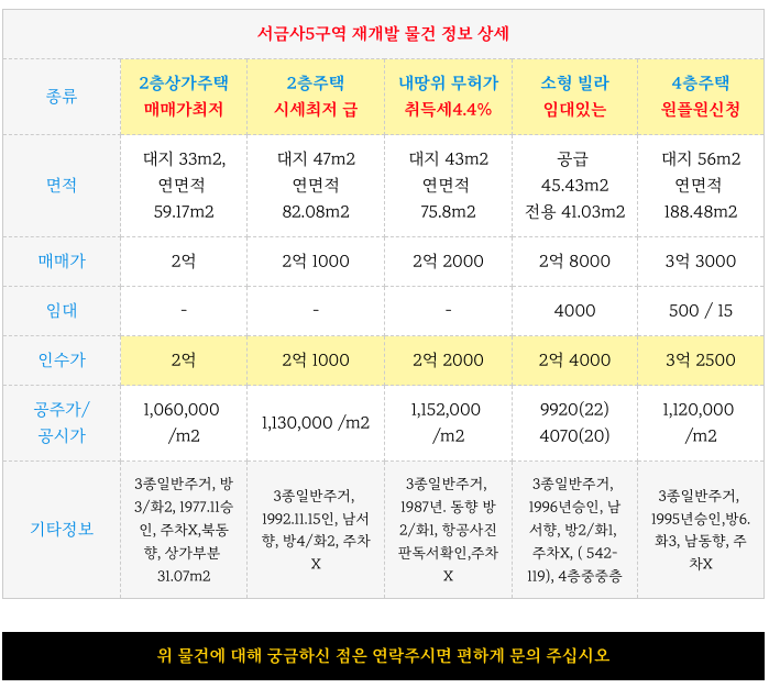 사시 총회 앞둔 서금사5구역 재개발의 급매 물건 정리 소개드리겠습니다.