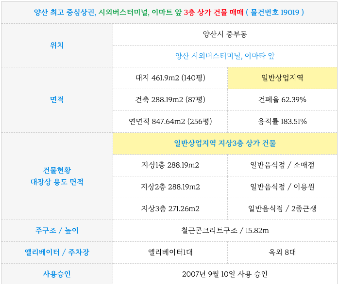 양산 최고 중심상권, 시외버스터미널, 이마트 앞 3층 상가 건물 매매물건 정보 정리 드립니다.