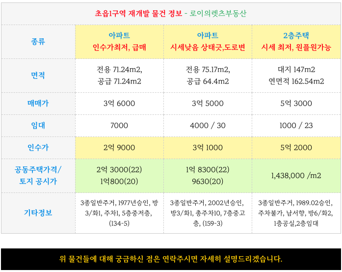초읍1구역 재개발의 시세보다 낮은 물건들 업데이트 하여 드리겠습니다.