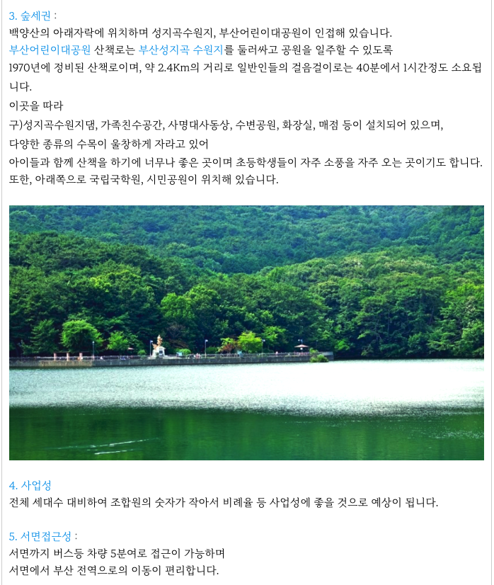부산 도심내에 가까이 위치해 있으면서 숲세권을 느낄수 있는 곳으로의 큰 장점을 가지고 있습니다.
