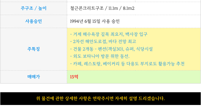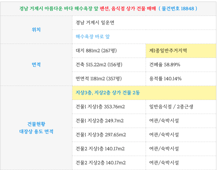 경남 거제시 아름다운 바다 해수욕장 앞 펜션, 음식점 상가 건물 매매 물건 소개해 드리겠습니다.